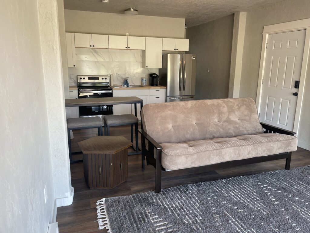 This 1 bedroom 1 bathroom house is located right behind the BobKat Mountain Motel. The house has 1 queen bed, a bathroom with shower, toilet and sink. There is a kitchen with oven, stove top, refrigerator and Keurig Coffee maker. There is a couch and chair in the living area. This house has great views, and is a great location for fishing the Missouri.